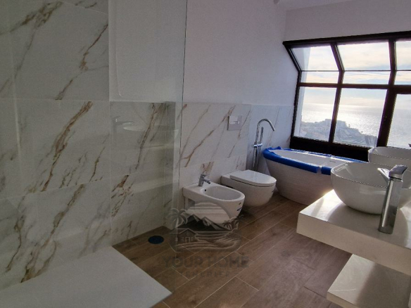 The modern kitchen is a chef’s dream, featuring sleek countertops, ample storage, and a functional layout. Its open design ensures you can enjoy the stunning sea views while preparing meals.